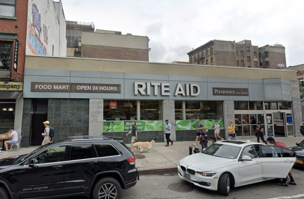 The Red Apple site is currently occupied by a one-story Rite Aid retail store.